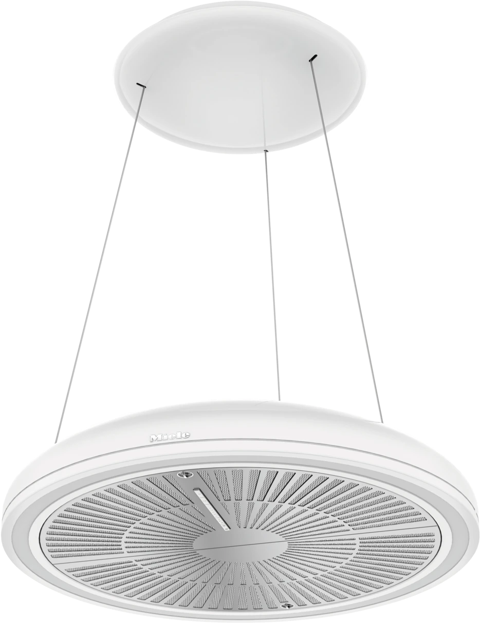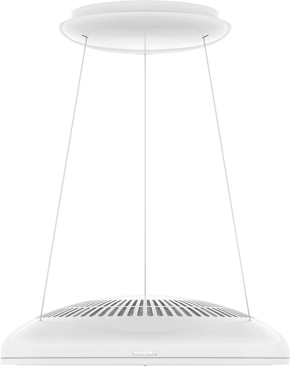 Hotte pour îlot avec une suspension spéciale sur des câbles discrets et alimentation intégrée.