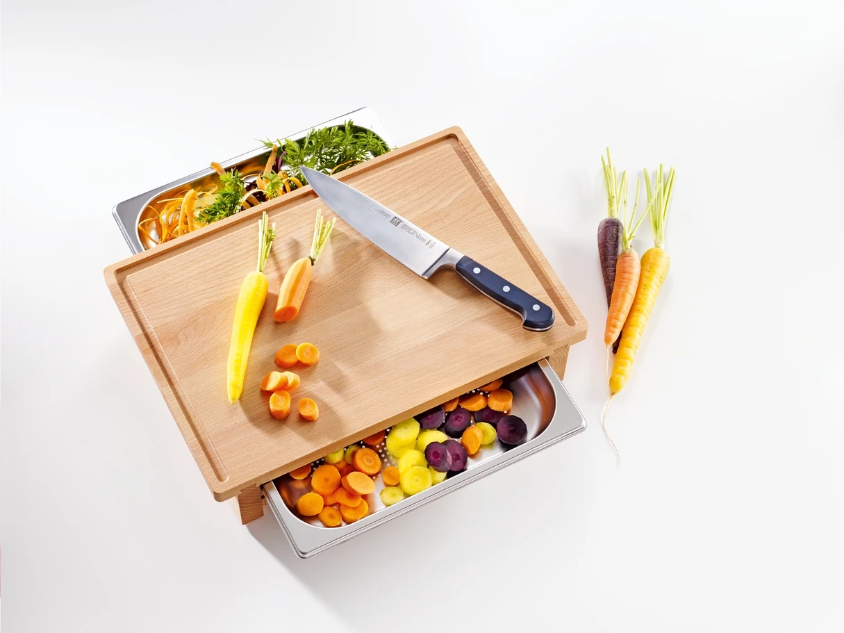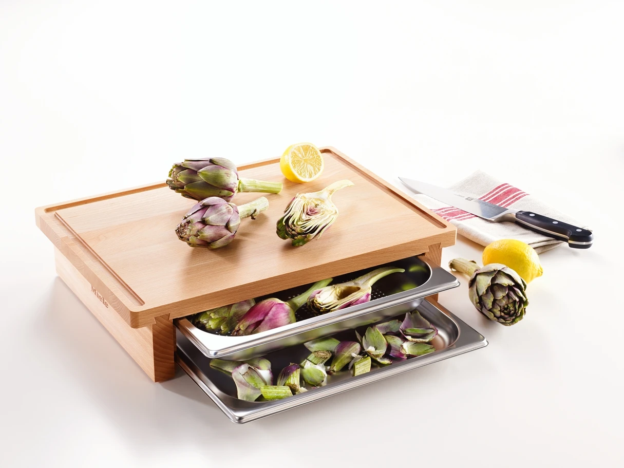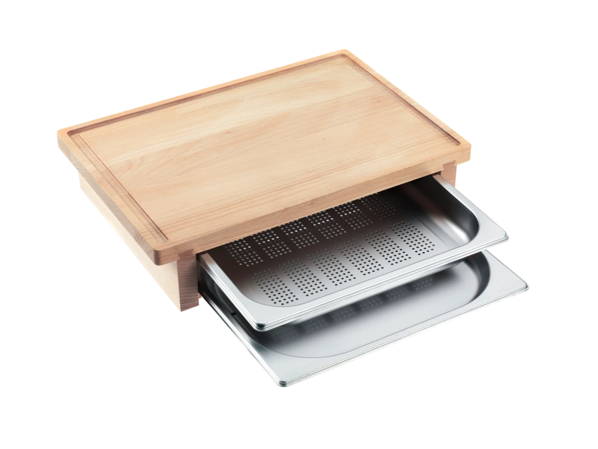 Planche à découper avec 2 plats pour cuisson à la vapeur.