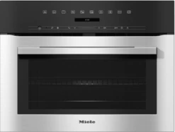 Four compact combiné micro-ondes en inox élégant avec programmes automatiques et modes combinés.