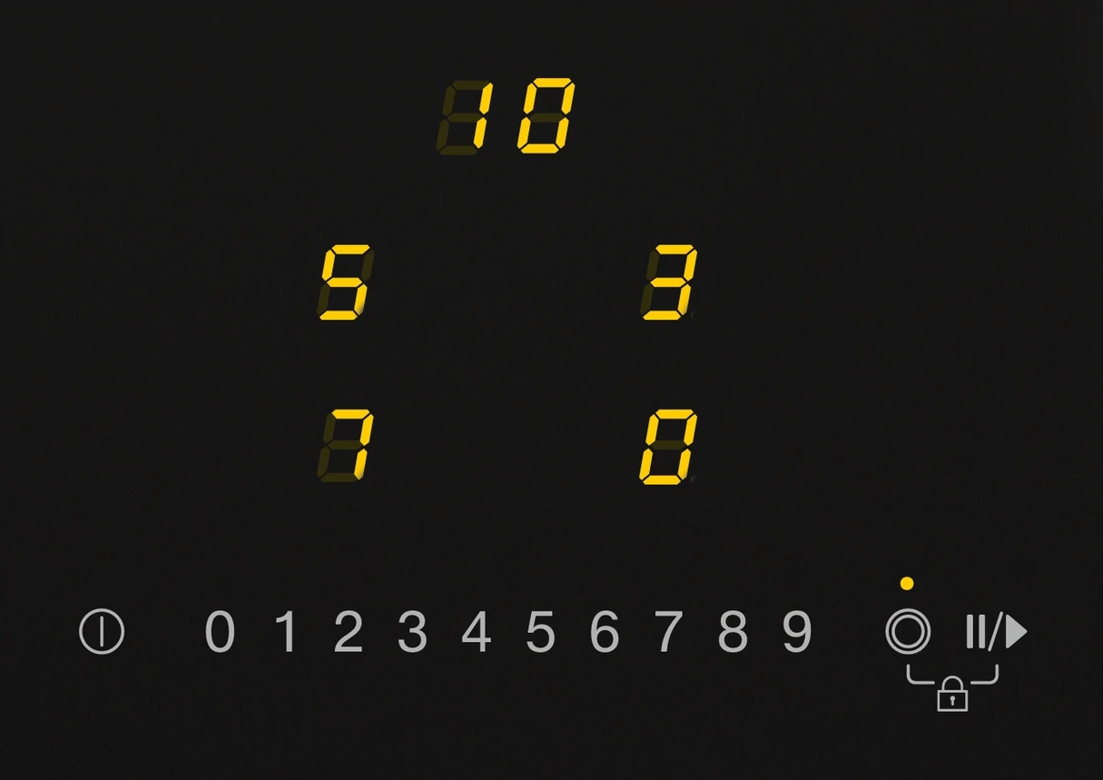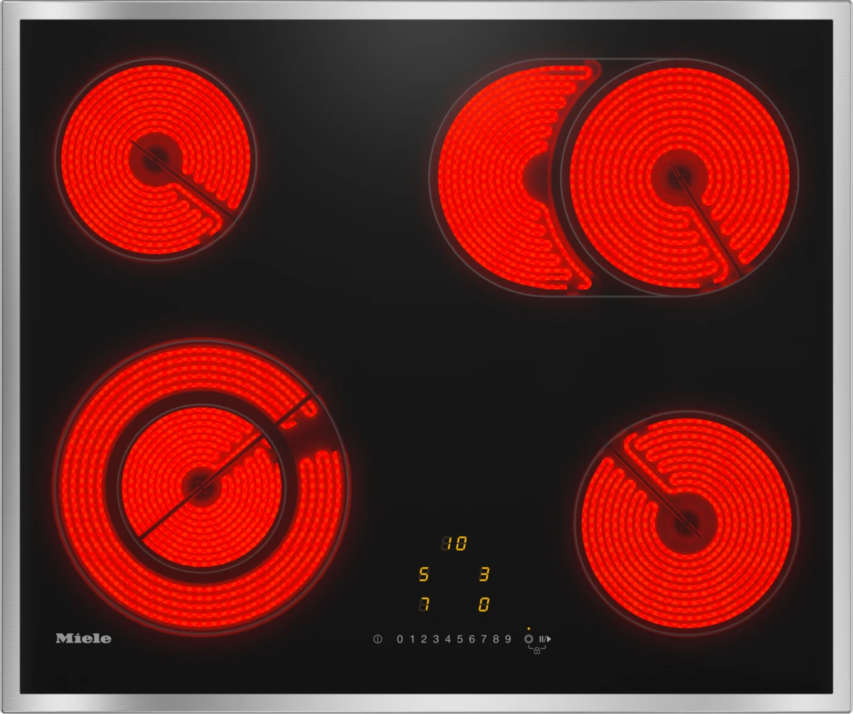 Table de cuisson vitrocéramique avec 1 zone de cuisson/rôtissage et 1 zone de cuisson à diàmètre variable