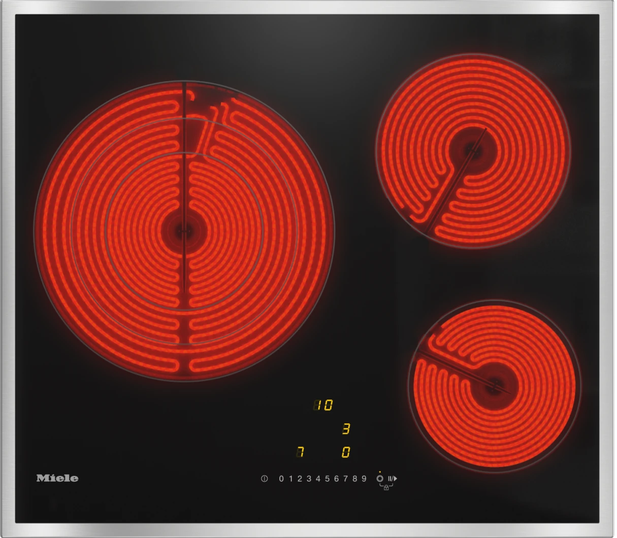 Table de cuisson vitrocéramique avec 3 zones de cuisson pour plus de confort .