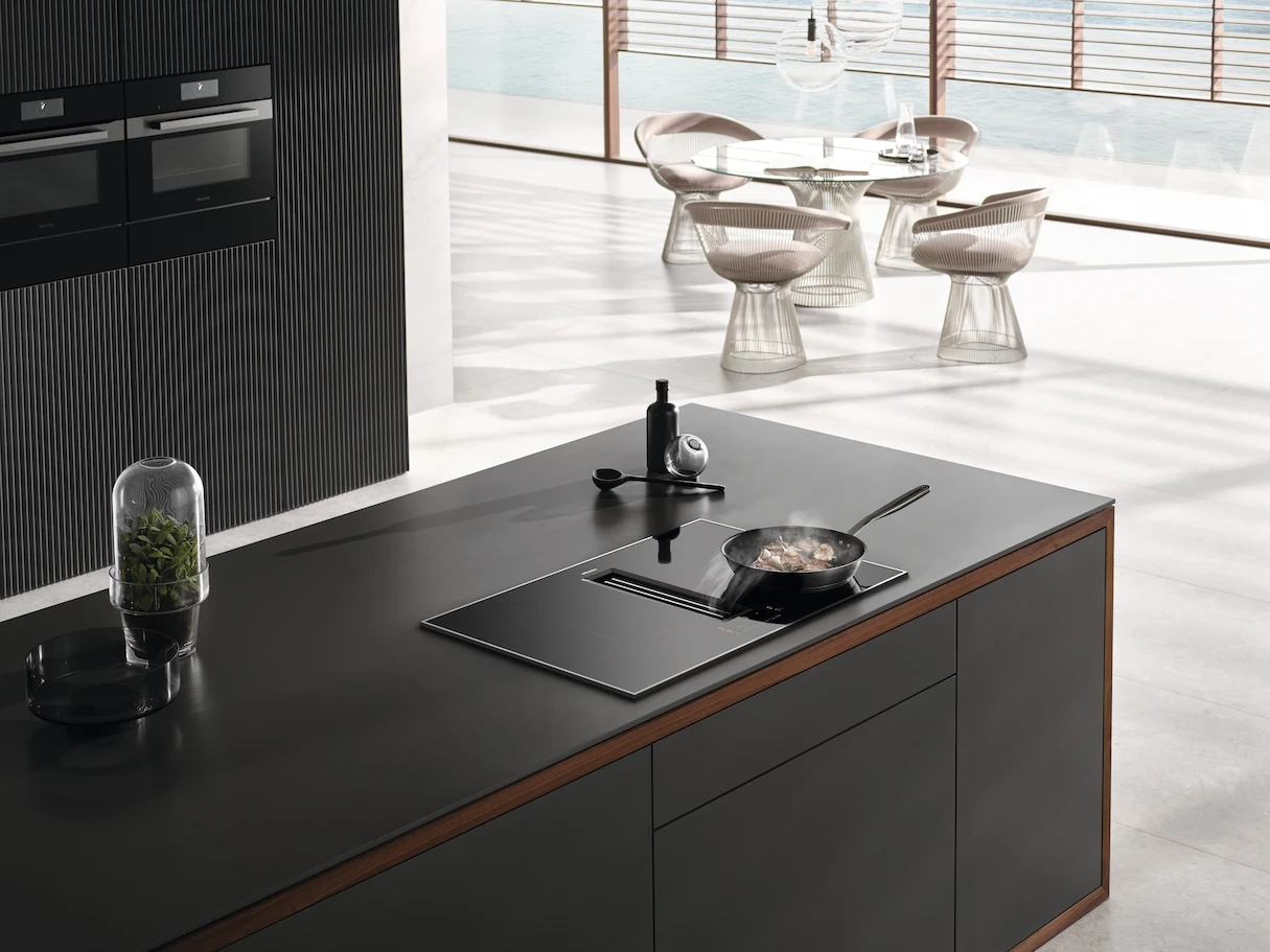 Table de cuisson à induction avec hotte intégrée avec moteur Silence et deux zones Flex pour mode recyclage
