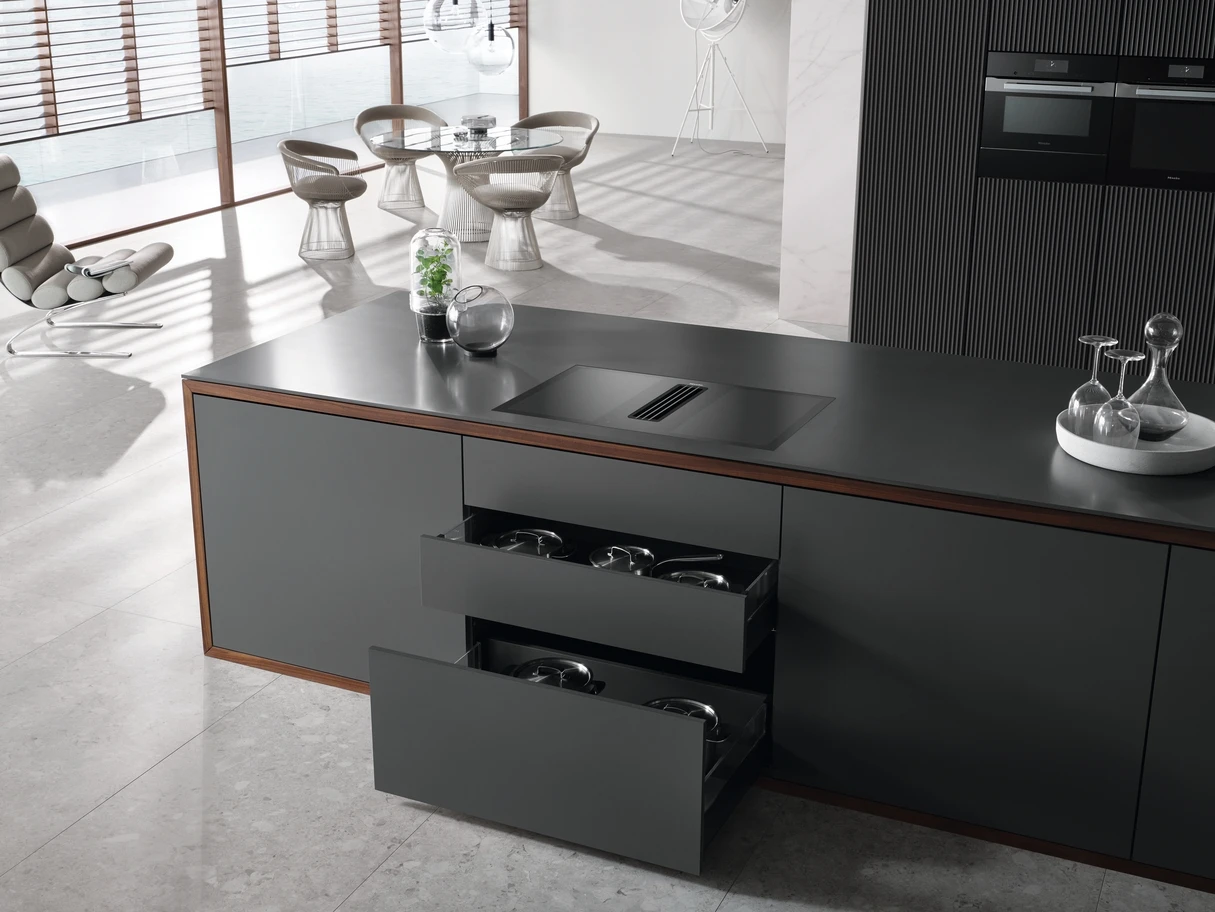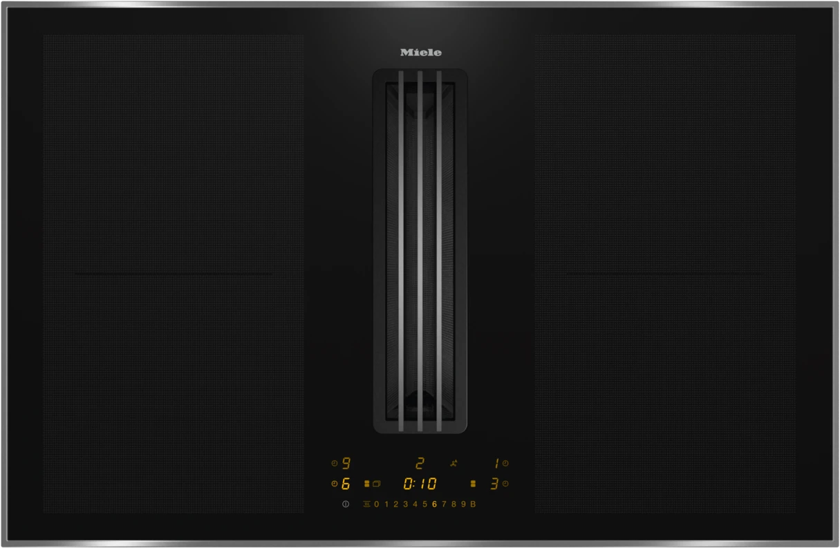 Table de cuisson à induction avec hotte intégrée avec deux zones de cuisson PowerFlex XL et évacuation des buées à fleur de plan