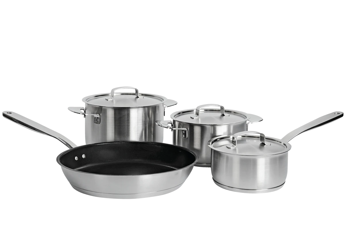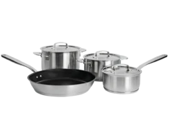 Kit de démarrage casseroles « All Steel » Fiskars (4 pièces) batterie de cuisine en acier inoxydable brossé mat exclusivement pour Miele.