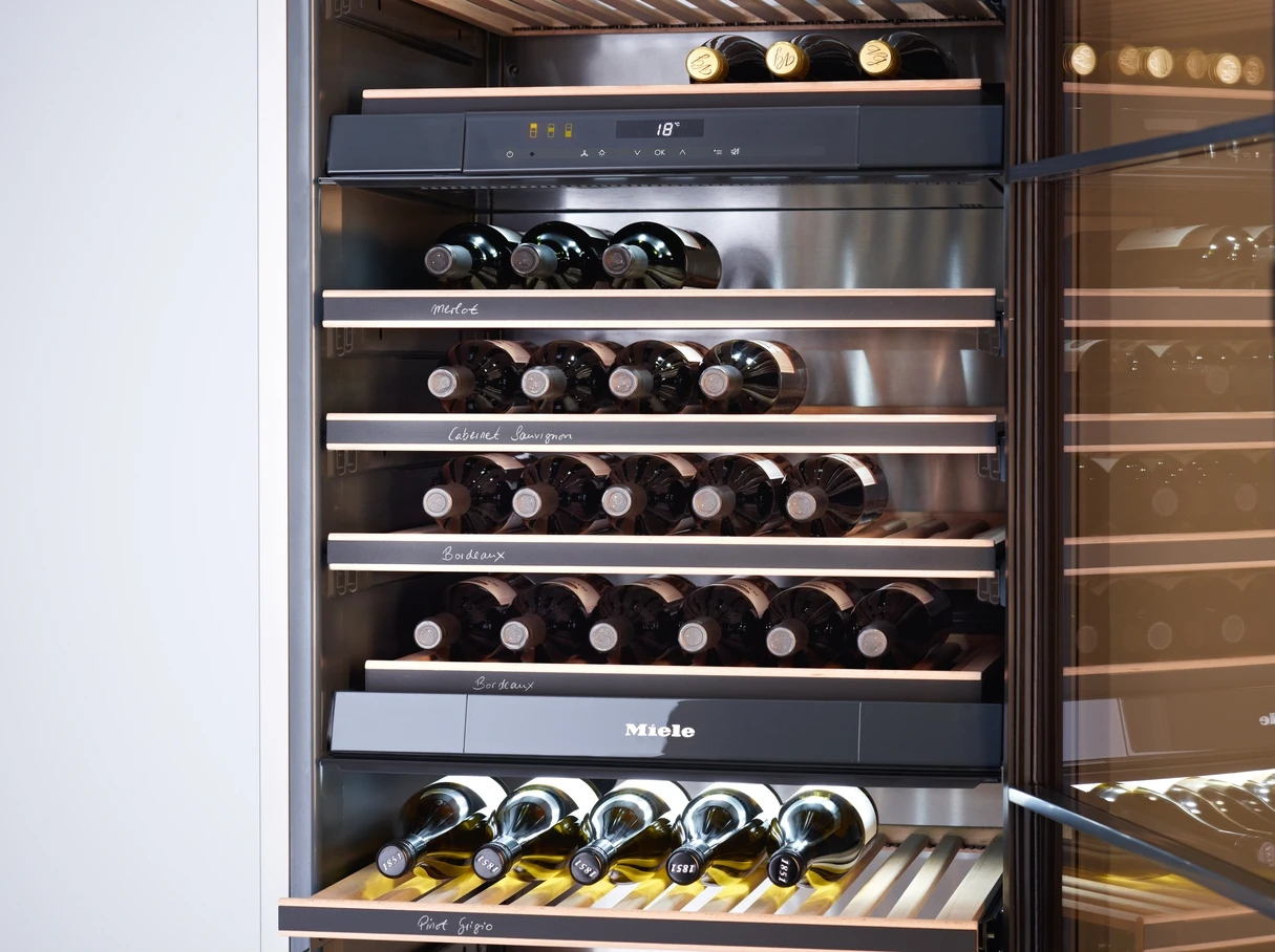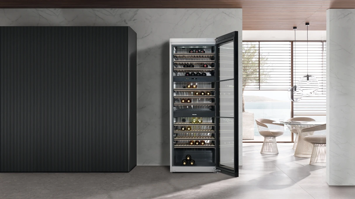 Cave à vin posable plus de flexibilité et de style, grâce à FlexiFrame et au NoteBoard Miele