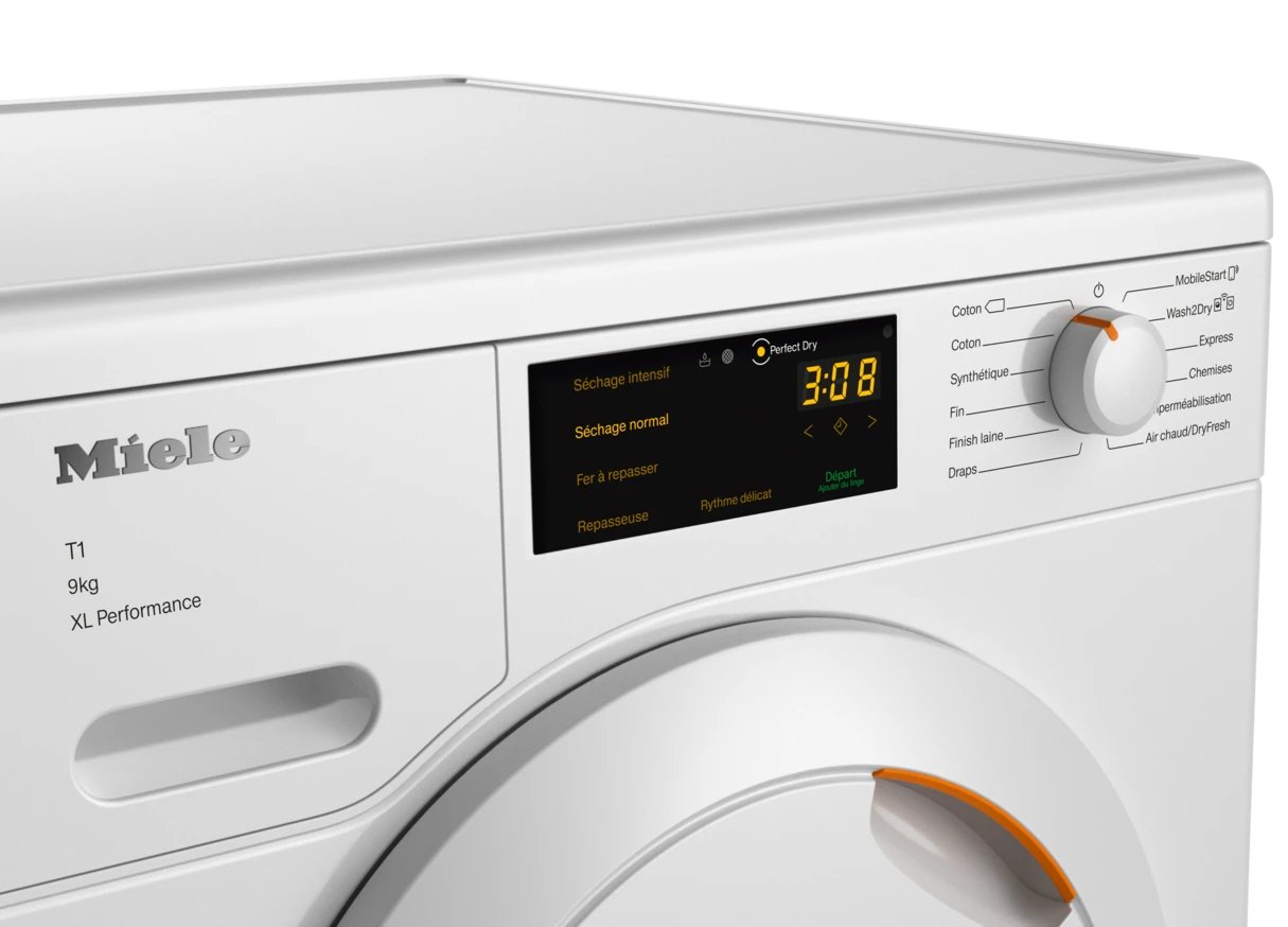 Sèche-linge pompe à chaleur T1 : avec Miele@home et une charge de 9 kg pour des résultats optimaux.
