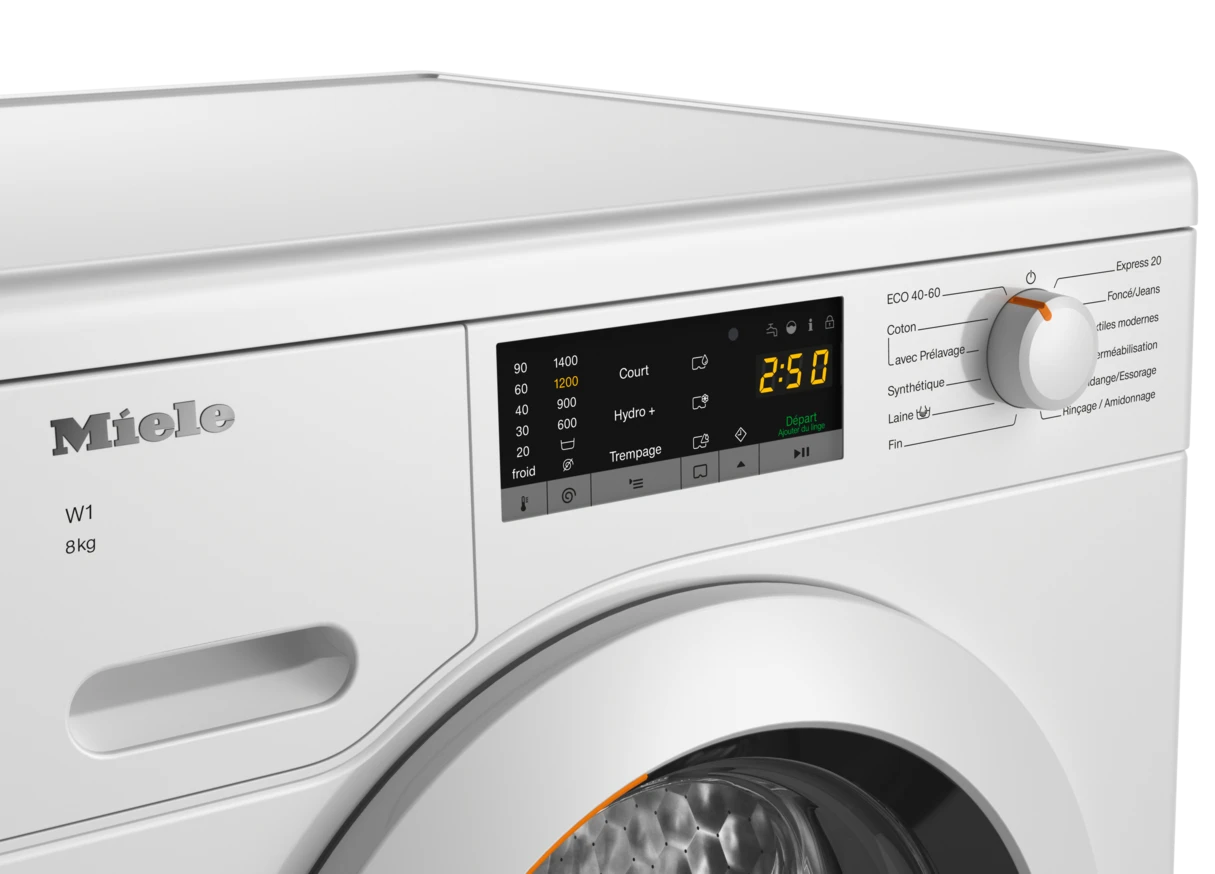 Lave-linge à chargement frontal W1 : la qualité Miele éprouvée au meilleur prix pour des charges de 1 à 8 kg.