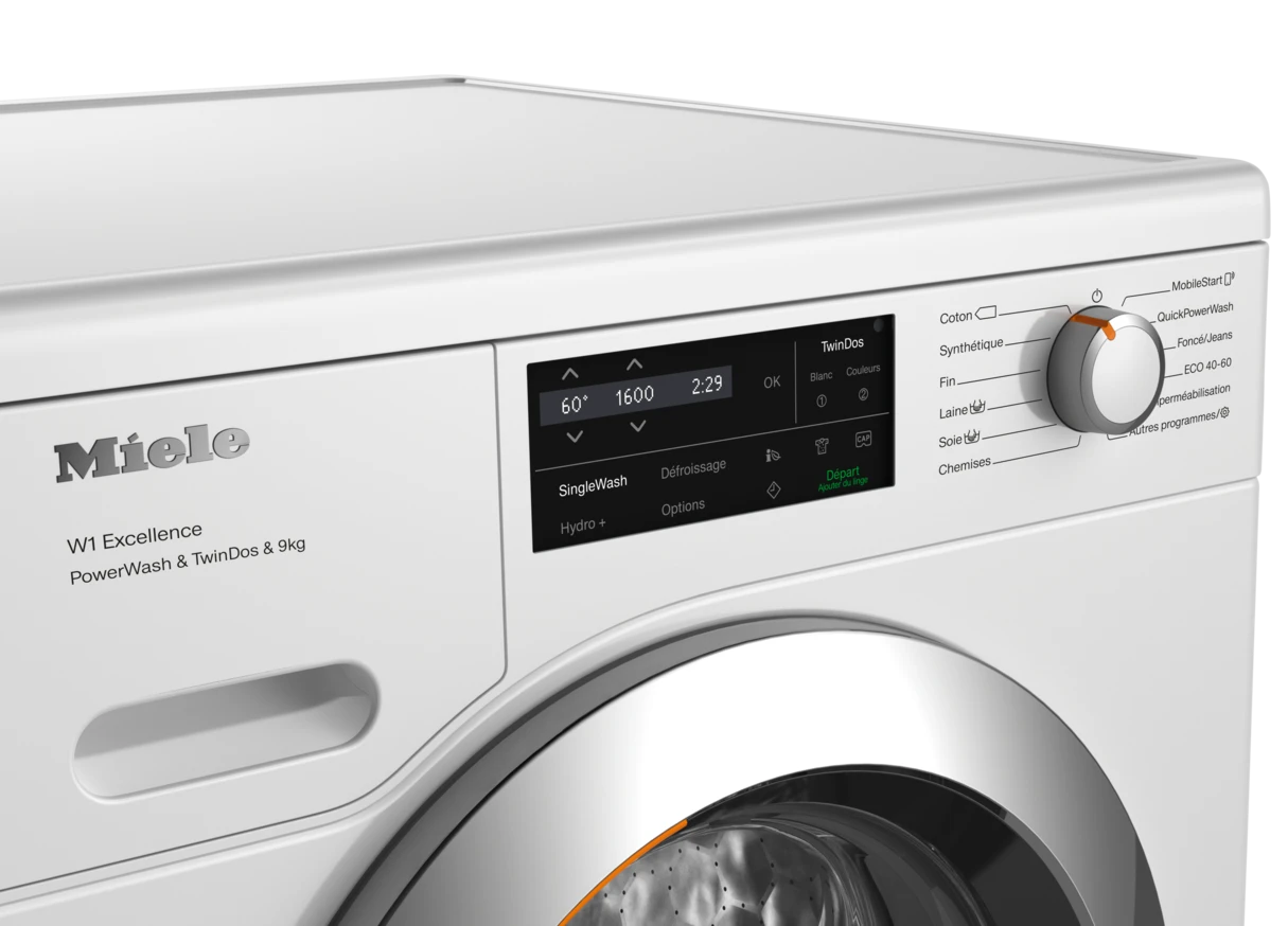 Lave-linge à chargement frontal W1 : TwinDos et SingleWash pour un soin du linge économe en temps et en énergie.
