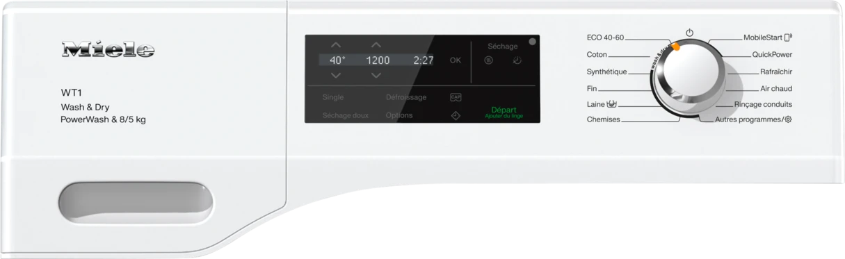 Lave-linge séchant WT1 : avec QuickPower et Single Wash&Dry – lavage et séchage efficaces et rapides.